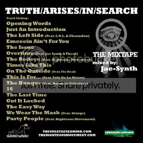 This mixtape has been out for a little bit now but I wasn’t turned on to TAIS until only a few days ago. Truth Arises In Search is a very positive showcase of TAIS’ ability on the mic and it sets some very high hopes and expectations for him in the future. I highly encourage that you check this out and be on the lookout for more material from TAIS in the near future. He will be making appearances on a slew of projects included an URB Magazine Mix and more…